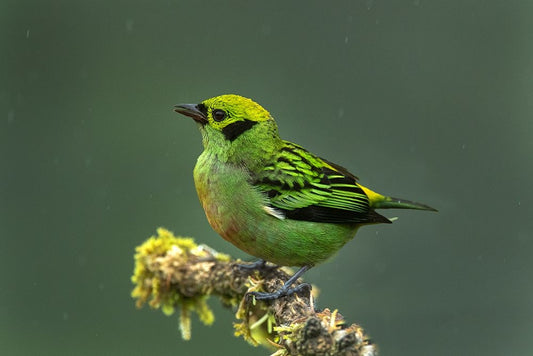 Costa Rica-Emerald tanager bird close-up White Modern Wood Framed Art Print with Double Matting by Jaynes Gallery