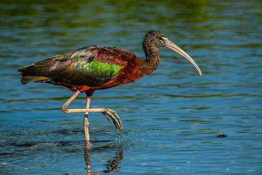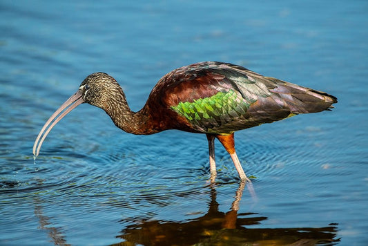 USA-Florida-Sarasota-Myakka River State Park-Wading Bird-Feeding-Glossy Ibis White Modern Wood Framed Art Print with Double Matting by Friel, Bernard