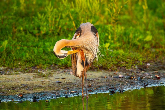 USA-Florida-Sarasota-Myakka River State Park-Preening Great Blue Heron White Modern Wood Framed Art Print with Double Matting by Friel, Bernard