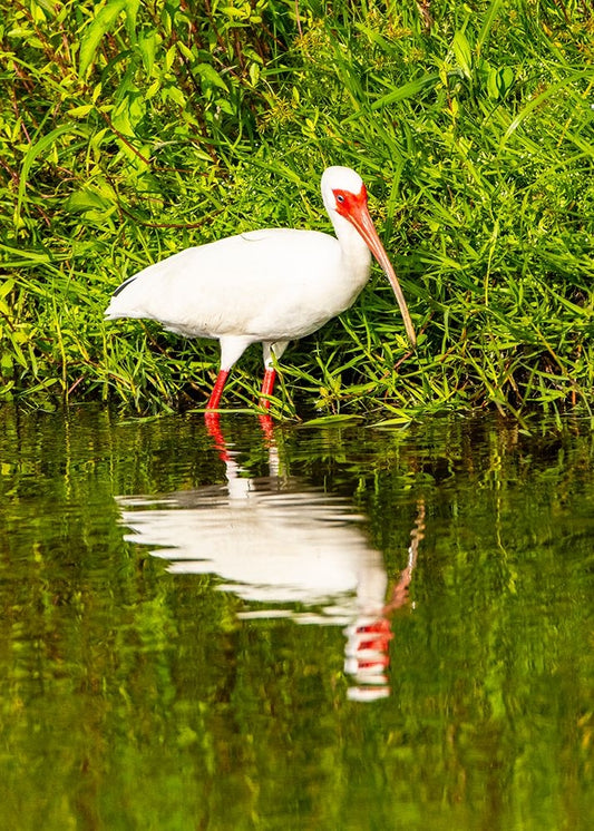 USA-Florida-Sarasota-Myakka River State Park-Wading Bird-Feeding-White Ibis White Modern Wood Framed Art Print with Double Matting by Friel, Bernard
