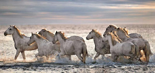 Camargue Horses - France Black Ornate Wood Framed Art Print with Double Matting by Ortega, Xavier