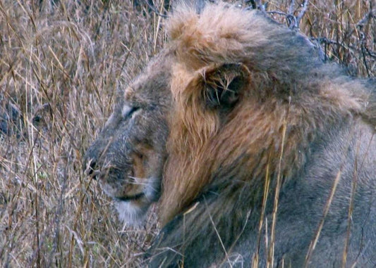 Male Lion Black Ornate Wood Framed Art Print with Double Matting by Underdahl, Dana