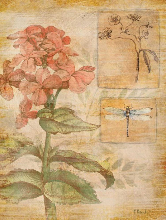 Flora Dragonfly Black Ornate Wood Framed Art Print with Double Matting by Brent, Paul