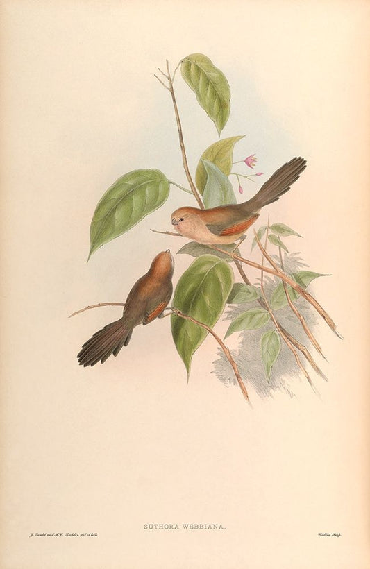 Paradoxornis Gularis Black Ornate Wood Framed Art Print with Double Matting by CAG
