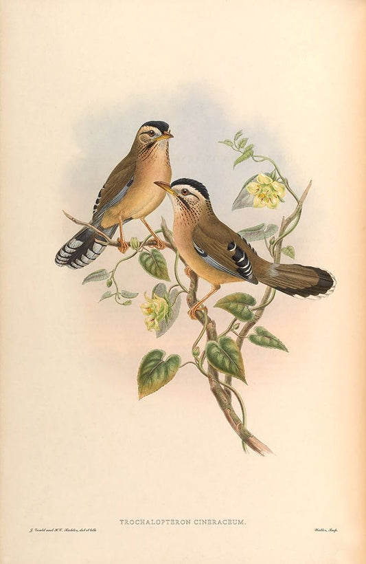 Trochalopteron Cineraceum Black Ornate Wood Framed Art Print with Double Matting by CAG