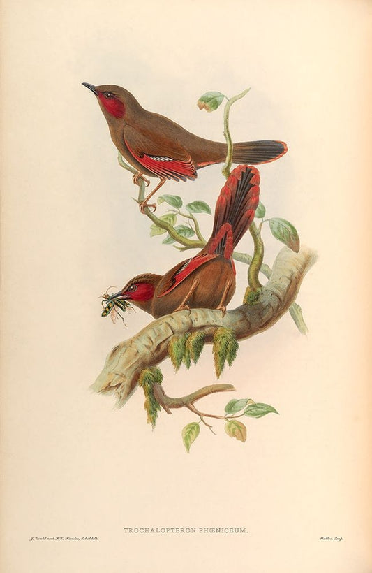 Trochalopteron Phoeniceum Black Ornate Wood Framed Art Print with Double Matting by CAG