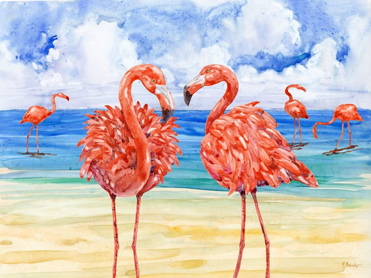 Martinique Flamingos Horizontal Black Ornate Wood Framed Art Print with Double Matting by Brent, Paul