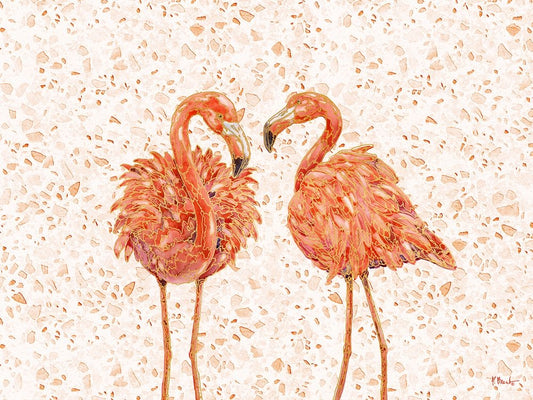 Martinique Flamingo Horizontal - Terrazzo Black Ornate Wood Framed Art Print with Double Matting by Brent, Paul