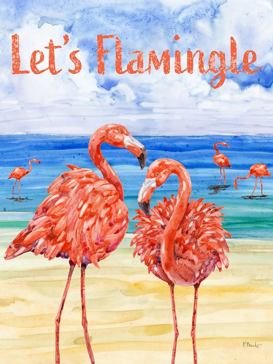 Martinique Flamingos Vertical Black Ornate Wood Framed Art Print with Double Matting by Brent, Paul