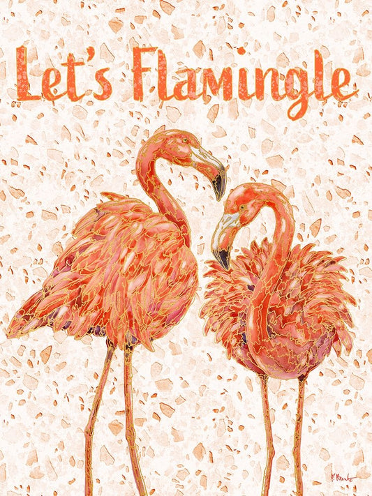 Martinique Flamingos Vertical - Terrazzo Black Ornate Wood Framed Art Print with Double Matting by Brent, Paul