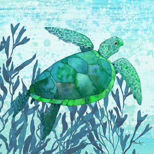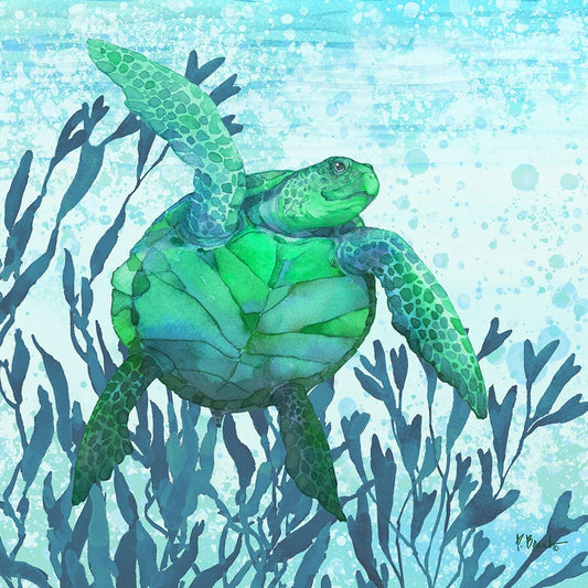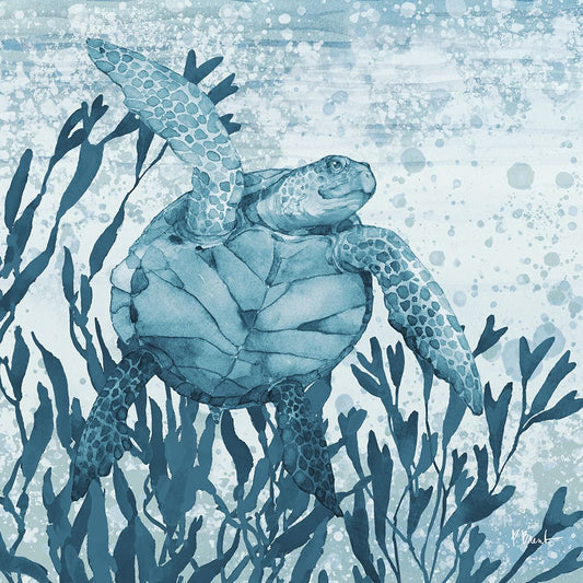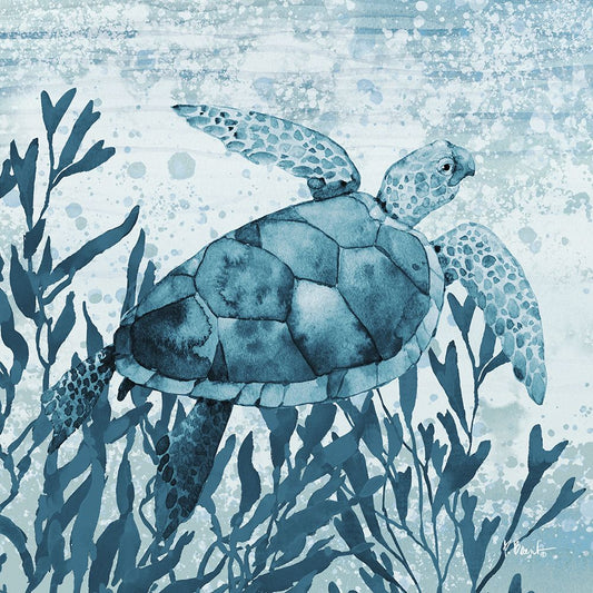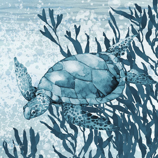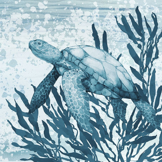Calypso Turtles I - Indigo Black Ornate Wood Framed Art Print with Double Matting by Brent, Paul