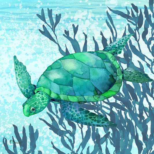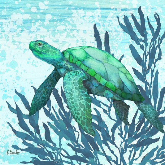 Calypso Turtles I - Bright Black Ornate Wood Framed Art Print with Double Matting by Brent, Paul