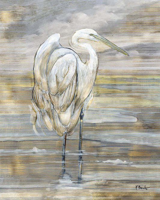 Golden Egret Black Ornate Wood Framed Art Print with Double Matting by Brent, Paul