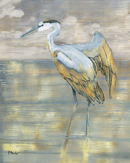 Golden Blue Heron Black Ornate Wood Framed Art Print with Double Matting by Brent, Paul