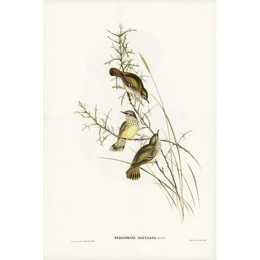 Spotted Sericornis-Sericornis maculatus Black Modern Wood Framed Art Print with Double Matting by Gould, John