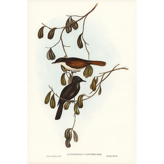 Buff-bellied shrike-thrush-Colluricincla rufiventris Black Modern Wood Framed Art Print with Double Matting by Gould, John