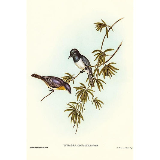 Pretty Flycatcher-Myiagra concinna Black Modern Wood Framed Art Print with Double Matting by Gould, John