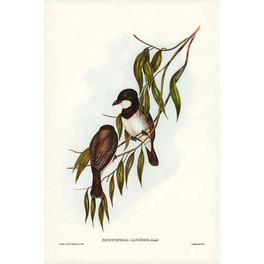 Shrike-like Phachycephala-Pachycephala Lanoides Black Modern Wood Framed Art Print with Double Matting by Gould, John