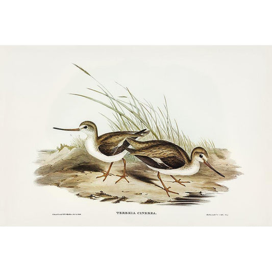 Terek Godwit-Terekia cinerea Black Modern Wood Framed Art Print with Double Matting by Gould, John