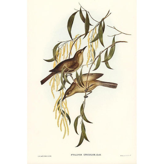 Uniform Honey-eater-Ptilotis unicolor Black Modern Wood Framed Art Print with Double Matting by Gould, John