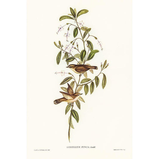 Fuscous Gerygone-Gerygone fuscus Black Modern Wood Framed Art Print with Double Matting by Gould, John