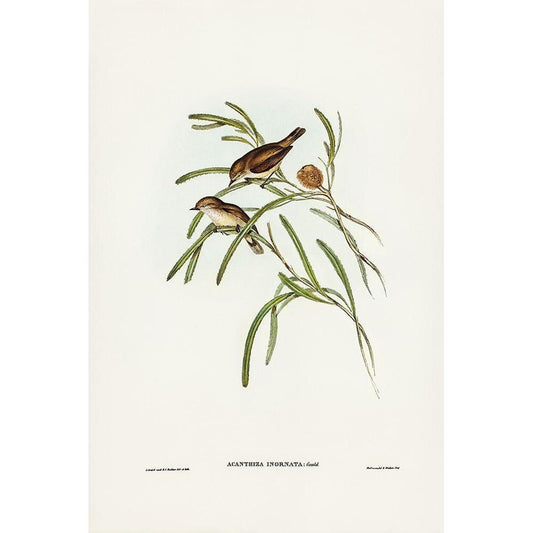 Plain-coloured Acanthiza-Acanthiza inornata Black Modern Wood Framed Art Print with Double Matting by Gould, John