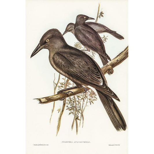 Grey Crow-Shrike-Strepera Anaphonensis Black Modern Wood Framed Art Print with Double Matting by Gould, John