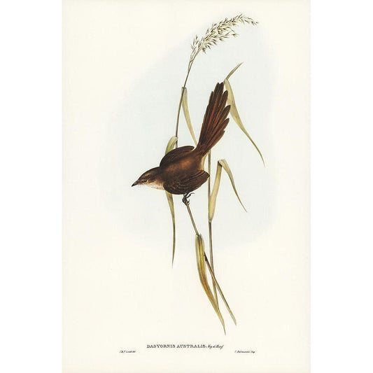 Bristle Bird-Dasyornis Australis Black Modern Wood Framed Art Print with Double Matting by Gould, John