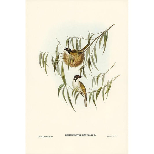 Lunulated Honey-eater-Melithreptus lunulatus Black Modern Wood Framed Art Print with Double Matting by Gould, John