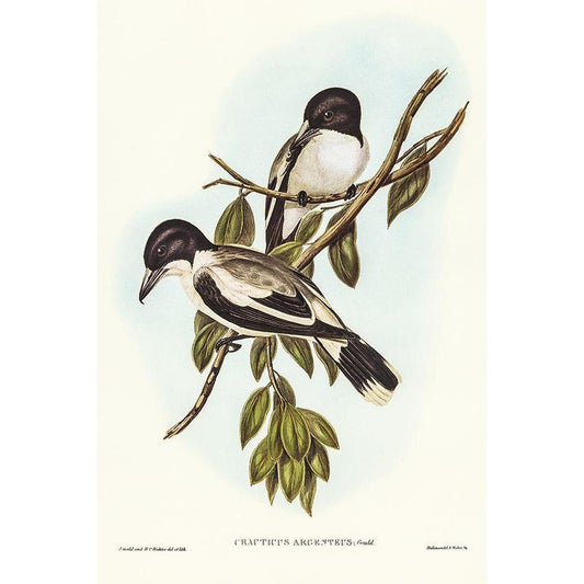 Silvery-backed Butcher-Bird-Cracticus argenteus Black Modern Wood Framed Art Print with Double Matting by Gould, John