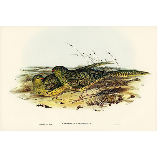 Ground Parakeet-Pezoporus formosus Black Modern Wood Framed Art Print with Double Matting by Gould, John