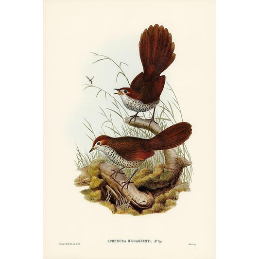 Rufous-headed Bristle-Bird-Sphenura Broadbenti Black Modern Wood Framed Art Print with Double Matting by Gould, John