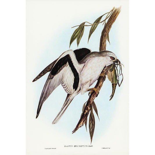 Letter-winged Kite-Elanus sciptus Black Modern Wood Framed Art Print with Double Matting by Gould, John