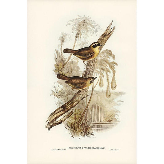 Yellow-throated Sericornis-Sericornis citreogularis Black Modern Wood Framed Art Print with Double Matting by Gould, John