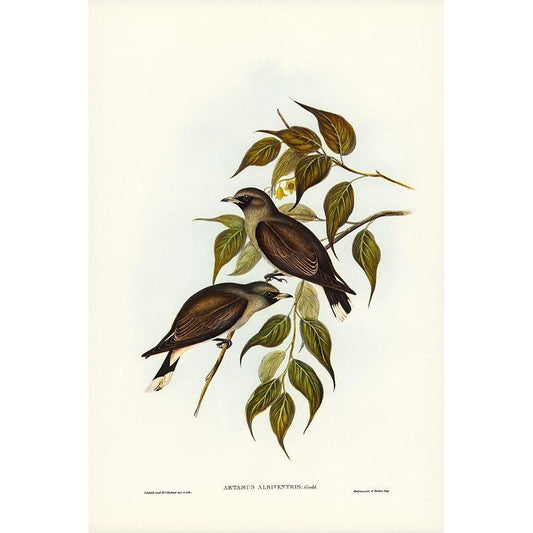 White-vented Wood Swallow-Artamus albiventris Black Modern Wood Framed Art Print with Double Matting by Gould, John