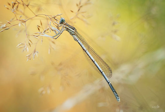 Damselfly White Modern Wood Framed Art Print with Double Matting by Podt, Martin