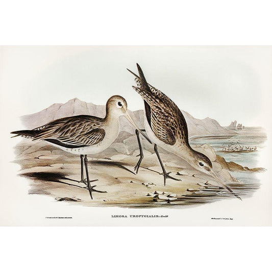 Barred-rumped Godwit-Limosa uropygialis Black Modern Wood Framed Art Print with Double Matting by Gould, John