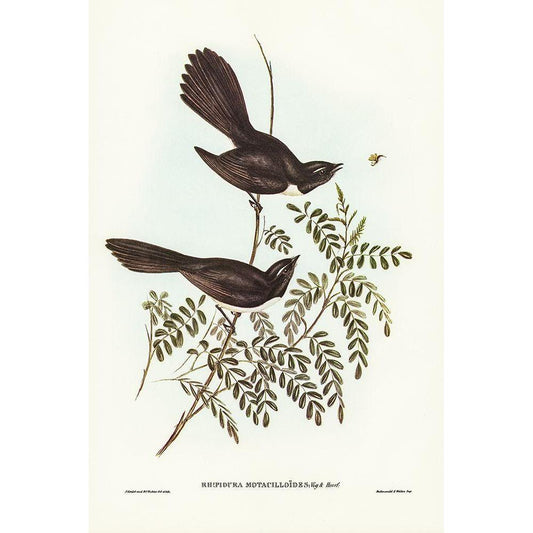 Black Fantailed Flycatcher-Rhipidura Motacilloides Black Modern Wood Framed Art Print with Double Matting by Gould, John