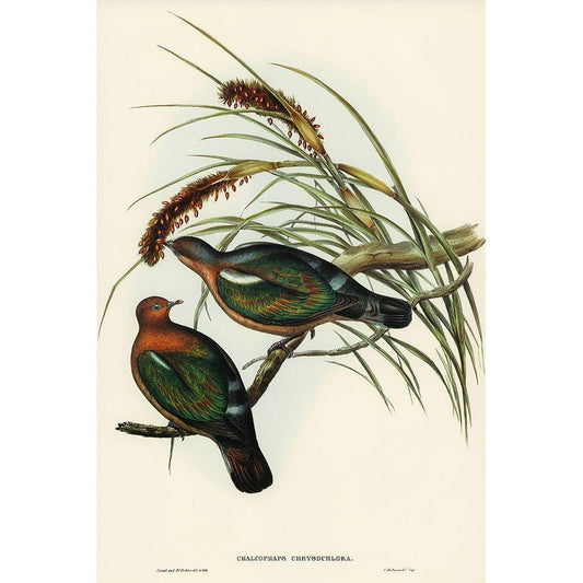 Little Green Pigeon-Chalcophaps chrysochlora Black Modern Wood Framed Art Print with Double Matting by Gould, John