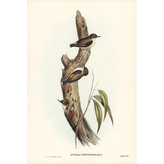 Orange-winged Sittella-Sittella chrysoptera Black Modern Wood Framed Art Print with Double Matting by Gould, John