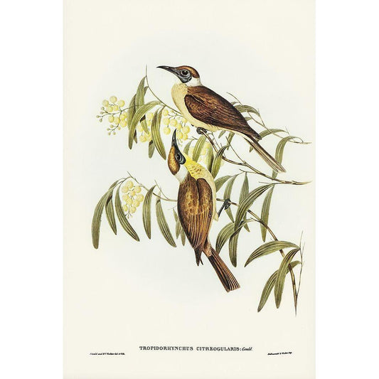 Yellow-throated Friar Bird-Tropidorhynchus citreogularis Black Modern Wood Framed Art Print with Double Matting by Gould, John