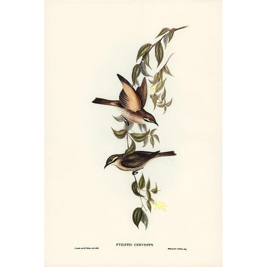 Yellow-faced Honey-eater-Ptilotis chrysops Black Modern Wood Framed Art Print with Double Matting by Gould, John