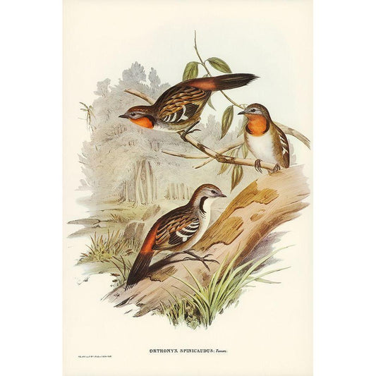 Spine-tailed Orthonyx-Orthonyx spinicaudus Black Modern Wood Framed Art Print with Double Matting by Gould, John