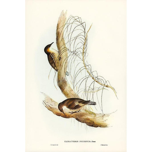 White-throated Tree-Creeper-Climacteris picumnus Black Modern Wood Framed Art Print with Double Matting by Gould, John