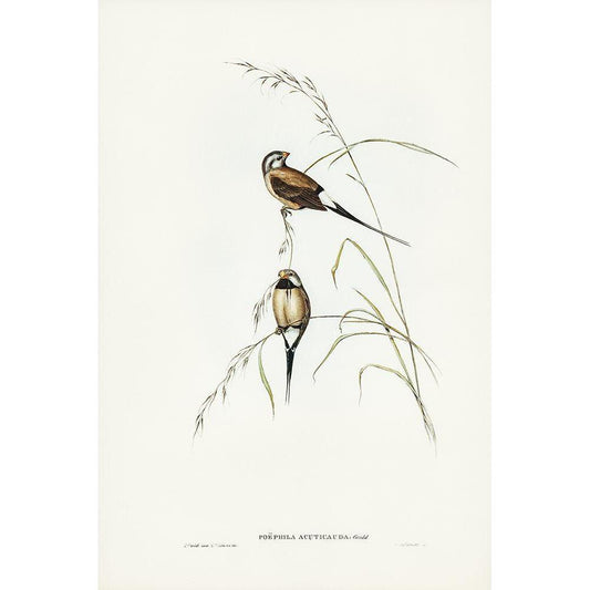 Long-tailed Grass Finch-Poephila acuticauda Black Modern Wood Framed Art Print with Double Matting by Gould, John