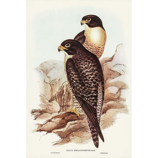 Black-cheeked Falcon-Falco melanogenys Black Modern Wood Framed Art Print with Double Matting by Gould, John