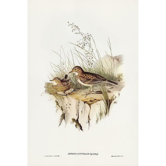 Australian Pipit-Anthus Australis Black Modern Wood Framed Art Print with Double Matting by Gould, John