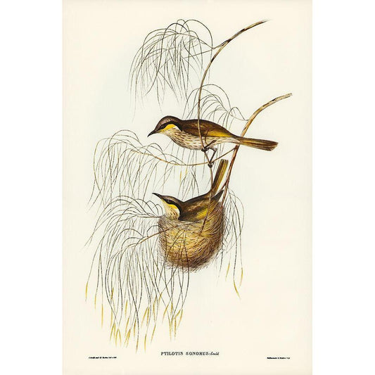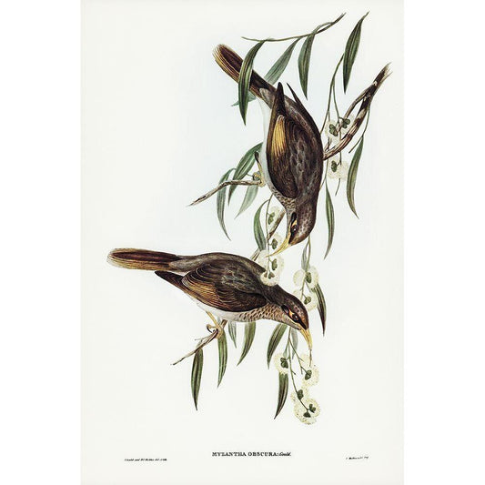 Singing Honey-eater-Ptilotis sonorus Black Modern Wood Framed Art Print with Double Matting by Gould, John