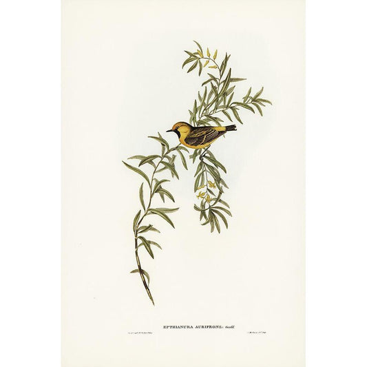 Orange-fronted chat-Ephthianura aurifrons Black Modern Wood Framed Art Print with Double Matting by Gould, John