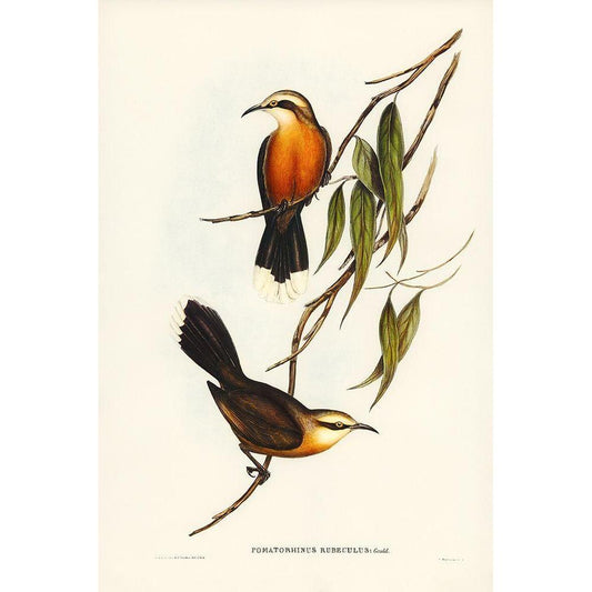 Red-breasted Pomatorhinus-Pomatorhinus rubeculus Black Modern Wood Framed Art Print with Double Matting by Gould, John